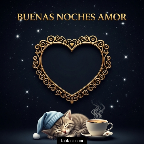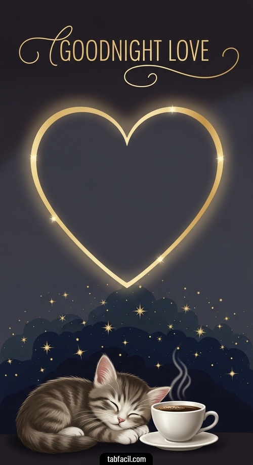 Personalizar la imagen: Good Night Love gatito durmiendo con cafecito Victor