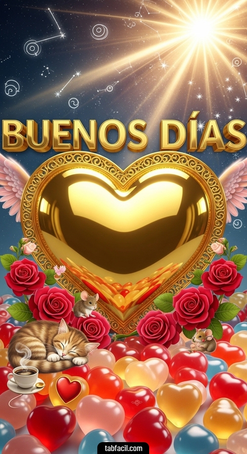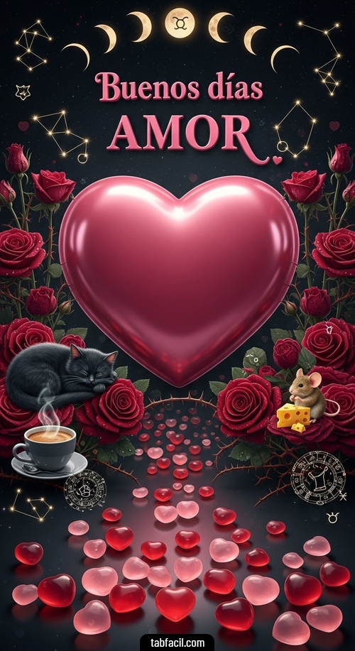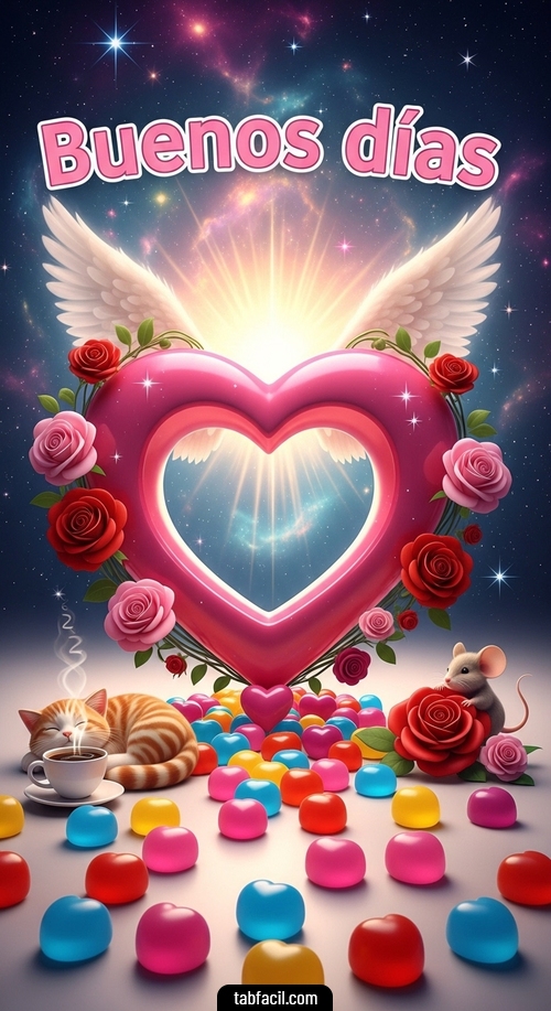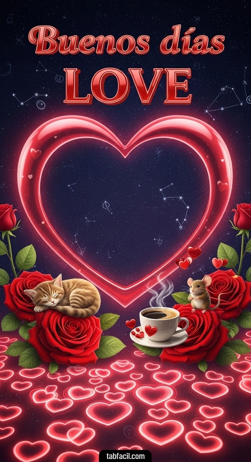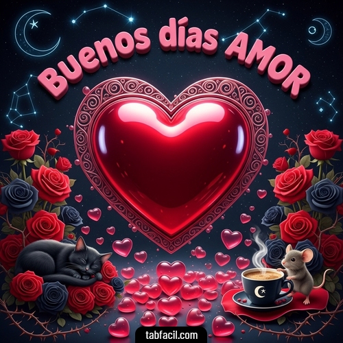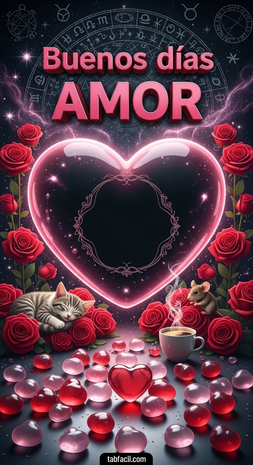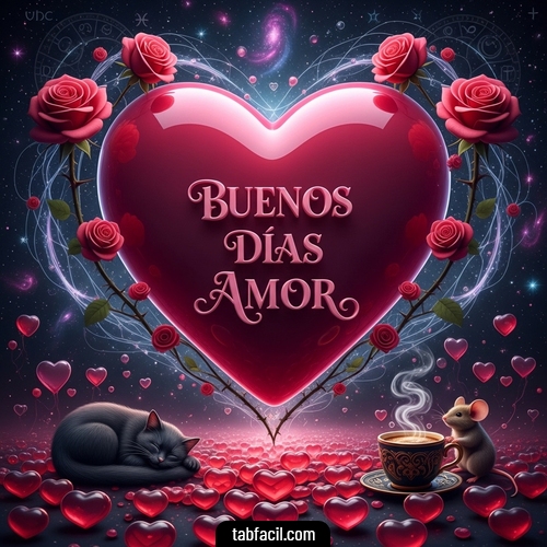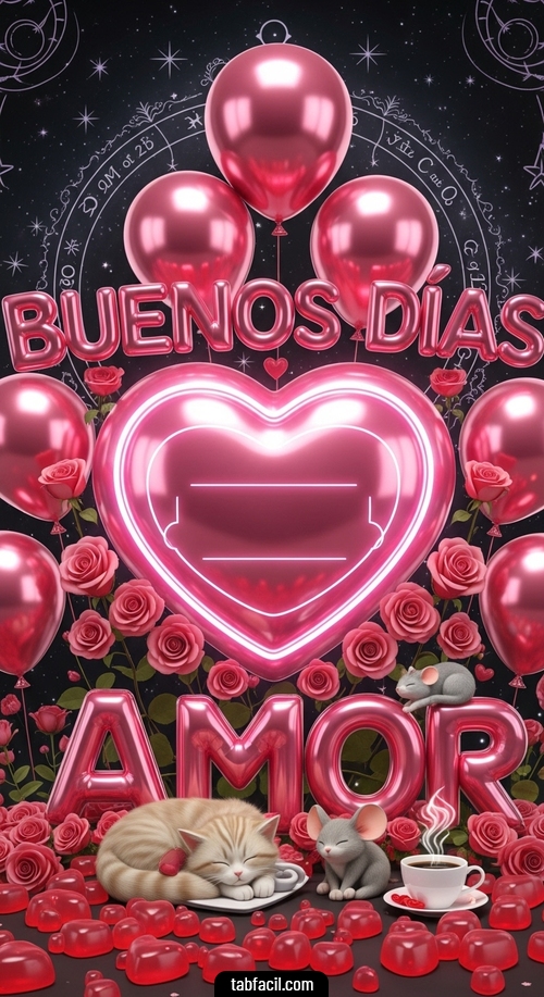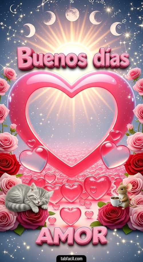 Personalizar la imagen: Buenos dias Amor gato y ratona Miriam